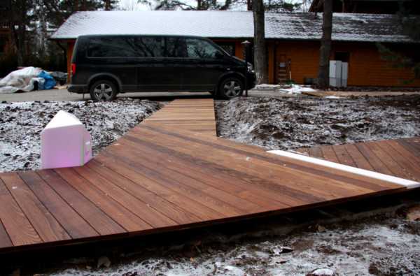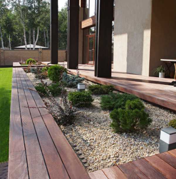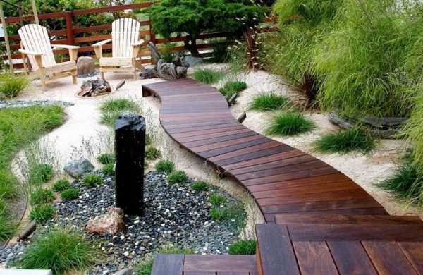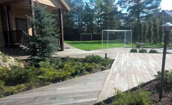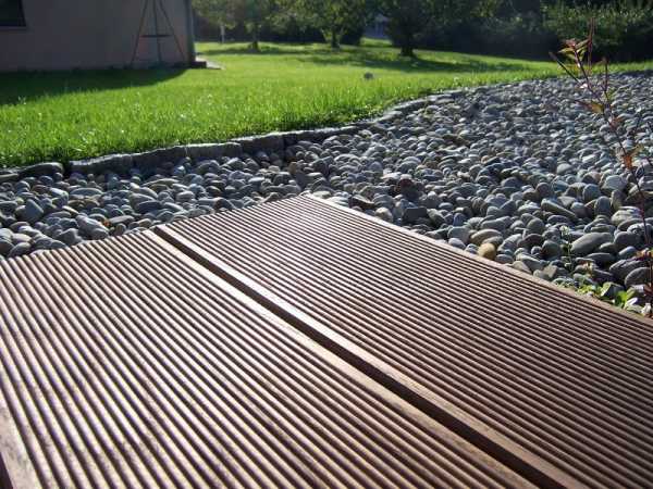 Но подобный настил не будет долговечным – из-за влаги и солнца он довольно быстро потеряет свои первозданные свойства и загниёт. Вследствие этого опытные стилисты ландшафтов предпочитают применять декинг.