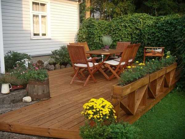 На любой даче найдётся два-три места, где уместно было бы обустроить ровные декоративные площадки, на которых отсутствовали бы грязь и сорняки. Выкладывать такие террасы камнем или булыжником чересчур дорого и сложно. Легче и менее дорогостояще изготовить покрытие из дерева.