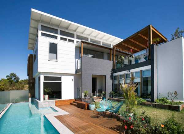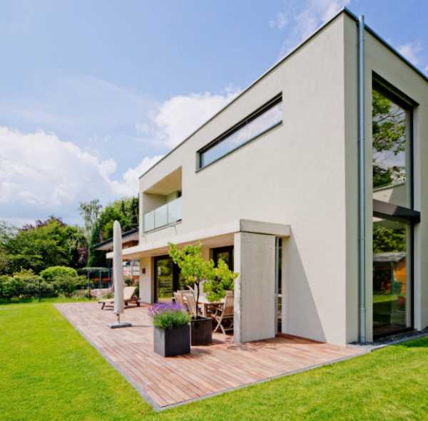 Светлый декинг красиво сочетается с дизайном дома в современном стиле