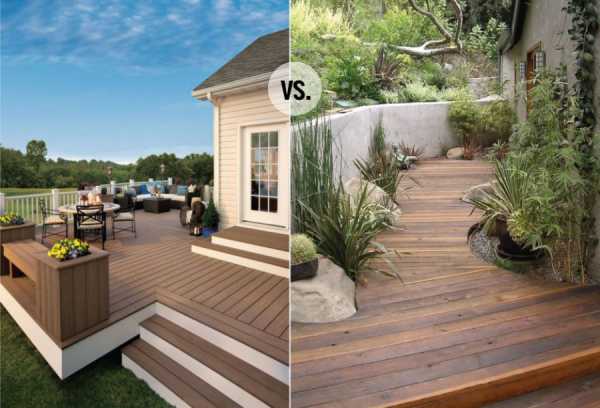 Декинг позволяет модно оформить придомовую территорию, выигрышно обыграть участок у искусственного водоёма, декорировать площадку для пикника. По фото декинга видно, что он делится на следующие виды: