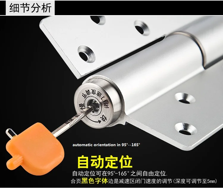 Автоматическую петлю можно использовать не только на обычных распашных дверях, но и на арочных дверях или дверях без верхнего косяка, для которых обычные верхние доводчики не подходят. совместимый. - Простая регулировка скорости закрывания