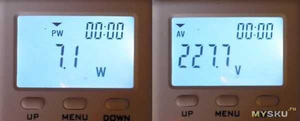 Вот, что показывает Ваттметр. 7,1Вт активной мощности.