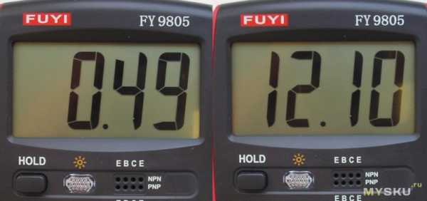 Посчитаем чисто светодиодную мощность. Р=0,49А*12,1В=5,93Вт. Всё, что не хватает, взял на себя драйвер.