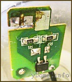 ![]() | Выпаиваем выходной резистор на 5 кОм и на его место ставим «подстроечник». |