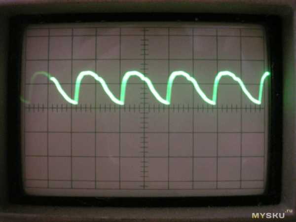 У различных лампочек форма незначительно будет отличаться. Всё зависит от величины фильтрующей ёмкости С2. Чем больше ёмкость, тем меньше горбы, тем меньше пульсации. Необходимо смотреть ГОСТ Р 54945-2012. А там чёрным по белому написано, что пульсации частотой до 300Гц вредны для здоровья. Там же формула для расчёта (приложение Г).