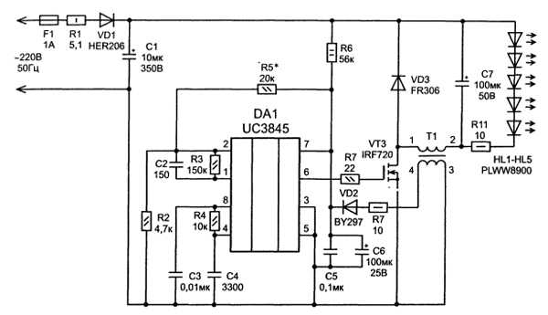 Схема драйвера для светодиодной лампы на 220В