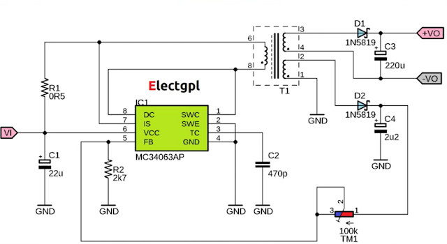Установка тока через светодиод задается величиной резистора в цепи обратной связи R1.