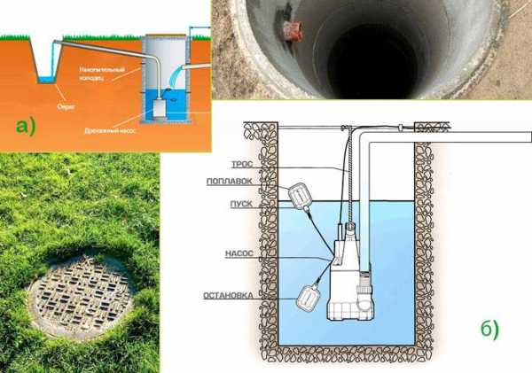 Где расположить сборный пункт зависит от того, через что будет отводиться лишняя вода. Вот основные варианты: