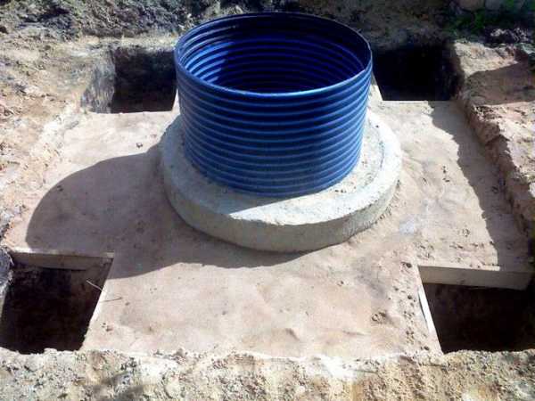 К сведению! Применение гофрированной трубы позволяет уменьшить нагрузки на дно конструкции.
