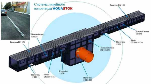 Линейная установка обеспечивает сбор и перемещение влаги не только с крыш, но и на всей поверхности участка. Например, на дорожках, парковочных местах, отмостках. Это защищает от скопления воды в подвале дома. Есть и определенный плюс для грунтовых вод, которые не превышают свой обычный уровень.