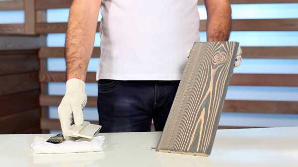 - После этого с помощью мягкой губки смывается нанесенная морилка с доски. Оставляя все трещины и углы, покрытые средством