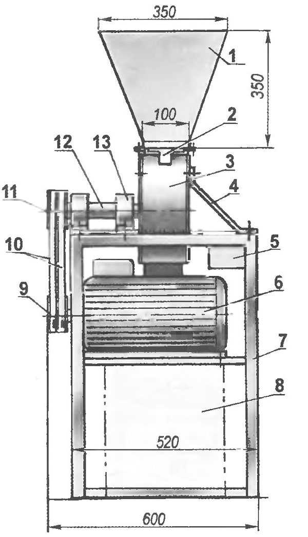 Самодельная зернодробилка: схема.