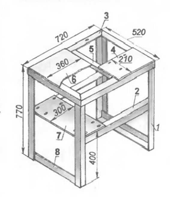 После чего всю конструкцию можно укрепить на листе фанеры, или металла, но лучше укрепить на высоком основании, например на большом столе. Просто привинчиваем основание в поверхности шурупами.