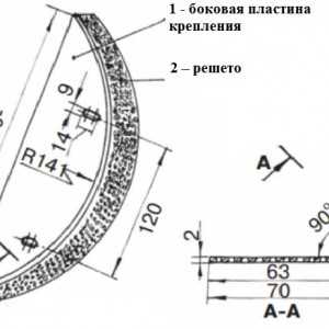 1 – боковой пластины крепления, 2 – решета