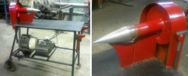 Главной проблемой создания такой самоделки, как винтовой дровокол, является поиск рабочего конуса, который можно приобрести в специализированных магазинах или же сделать своими руками с использованием металлической болванки.