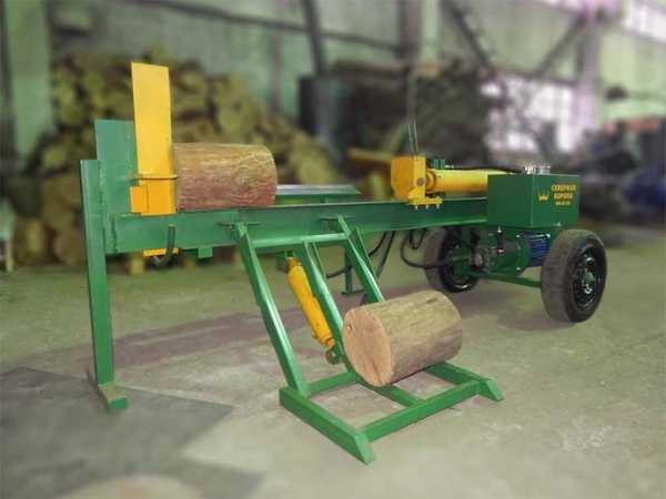 - Вертикальный — производит раскалывание бревна специальным ножом. Бревно должно фиксироваться, если это предусмотрено конструкцией, или поддерживаться руками.