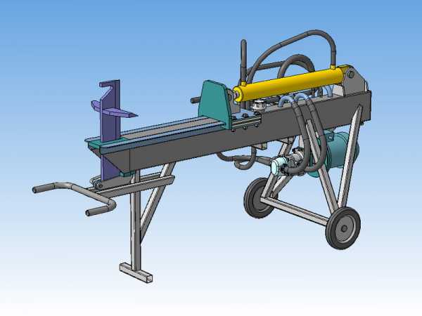 В такой конструкции самый сложный узел представлен гидравлической частью, состоящей из гидроцилиндра с толкателем, насосной части, а также элементами управления. Для изготовления рамы используется металлический уголок, швеллеры, двутавр или профильная труба. В процессе проектирования предусматривается размещение металлической рамы на колеса. Конструкция такого оборудования не предполагает использование электричества, а раскол древесины осуществляется с применением гидравлического домкрата.