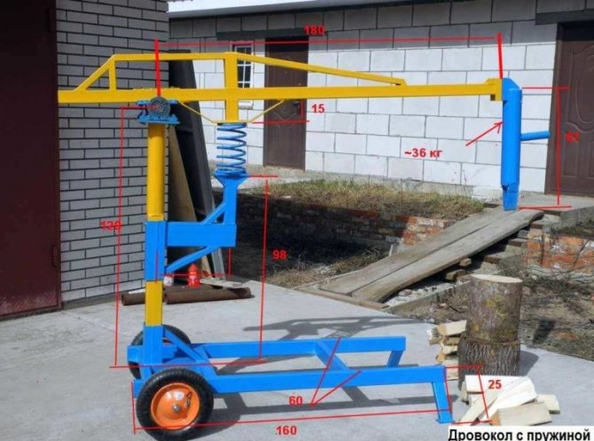 Опускаясь на чурку, колун раскалывает её и возвращается в исходное положение — вот и весь принцип действия.