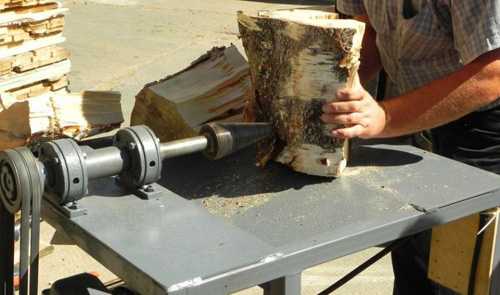 5. Самодельное устройство можно включать и пробовать в действии. При включении конус будет вращаться и вкручиваться в древесину, за счет этого дерево будет раскалываться на части.