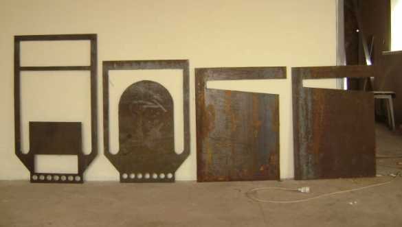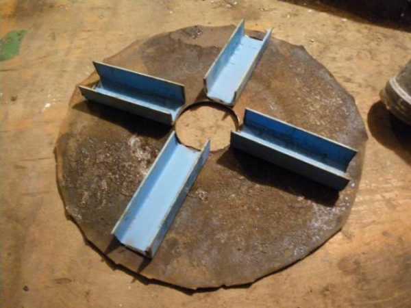 - Из стального листа вырезается два круга, диаметр которых рамен диаметру корпуса котла для бани. Они предназначены для разделения для разделения устройства на три зоны. Причём в круге, который отделяет топочную камеру от зольника прорезаются продольные отверстия, позволяющие отходам ссыпаться вниз.