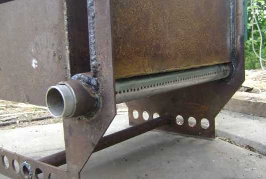 Приварите ближе к нижней части корпуса агрегата дно, а над ним – колосник. Колосник крепите так, чтобы уровень его установки совпадал с местом размещения внутренней перегородки в коробе.