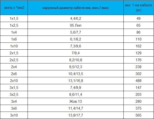 | Диаметр, мм | Вес метра, кг | Метров в тонне |