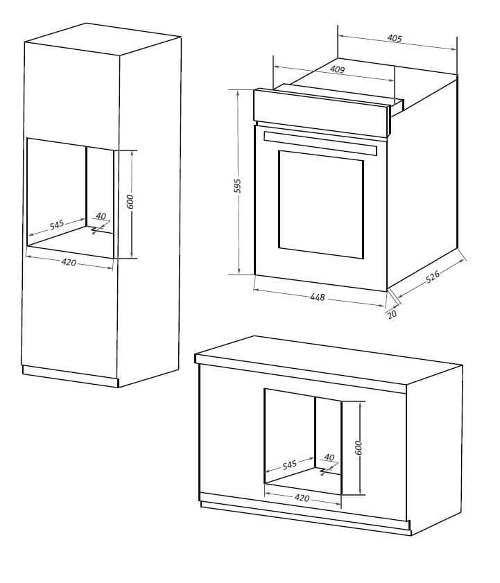 Духовой шкаф | Размеры встраиваемых моделей, стандартные габариты духовки (глубина, ширина, высота)