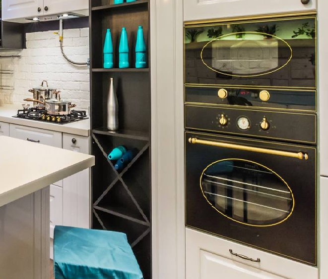 Прекрасный внешний вид подчеркивается отличной практичностью, поэтому встроенный духовой шкаф отличная идея.