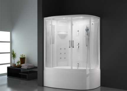 Отдельно следует сказать о комбинированной конструкции – ванне с душем. В этом случае в качестве поддона используется ванна, на которую устанавливается душевая кабина. Конечно, в использовании такое изделие менее удобное, чем сантехнические приборы по отдельности, но зато является неплохим компромиссом для малогабаритных санузлов.