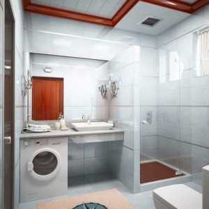 Ванная комната, чтобы выступать функциональным помещением, должна быть оборудована такой сантехникой, как унитаз, ванная или же душевой бокс. Угловые кабины расширяют свободное пространство. На сегодняшний день модельный ряд угловых кабин начинается с размеров занимаемой площади в 70 на 70 сантиметров. Позволяет установка душевого бокса оборудовать маленькие ванные еще и стиральной машиной. На фото можно посмотреть, как лучше всего выполнить расстановку техники в ванной.