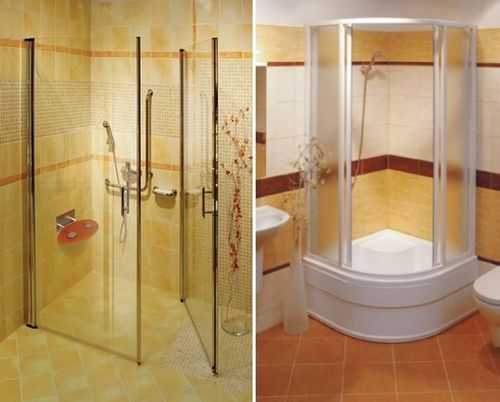 Надо сказать, что компактные угловые кабинки еще больше экономят пространство, чем прямоугольные, и позволяют использовать его более рационально.