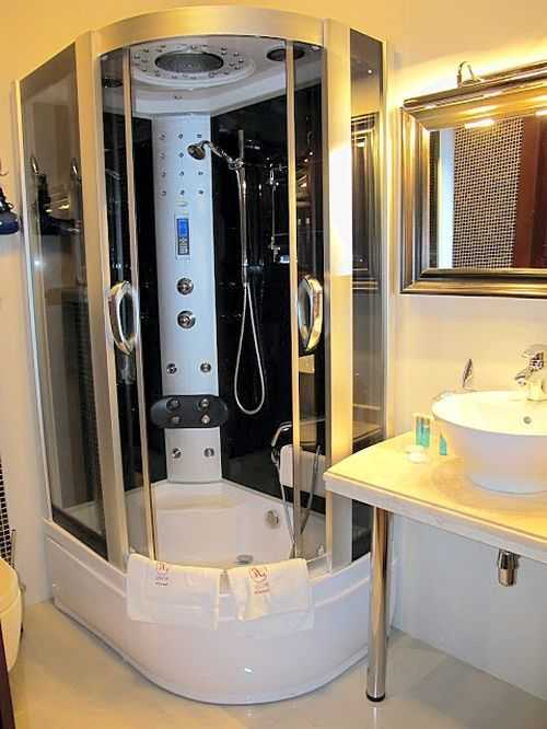 - Для стандартной ванной комнаты выбирайте кабинку с угловой установкой.