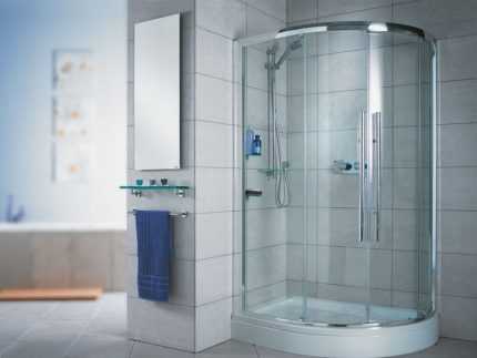 Лучшая форма поддона для небольшой площади – четверть круга. Доказано, что бокс такой формы занимает минимум места.