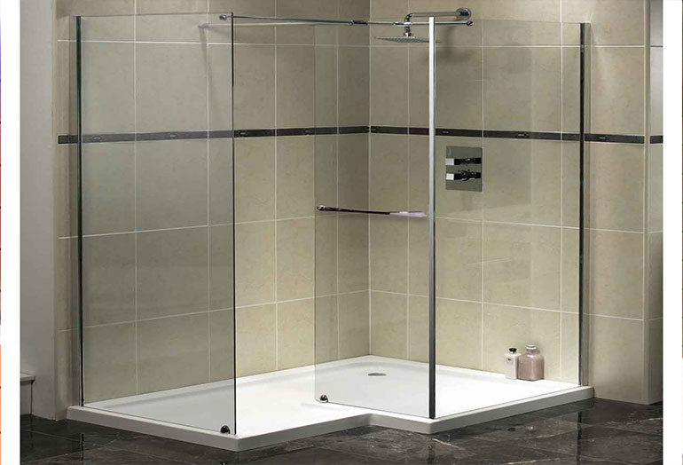 | экономия и эргономичное использование пространства в сравнении с чугунными/акриловыми ванными и традиционными душевыми кабинами; | довольно высокая цена стекла. Стекло для душевых перегородок используется закаленное, толщиной до10 мм; |