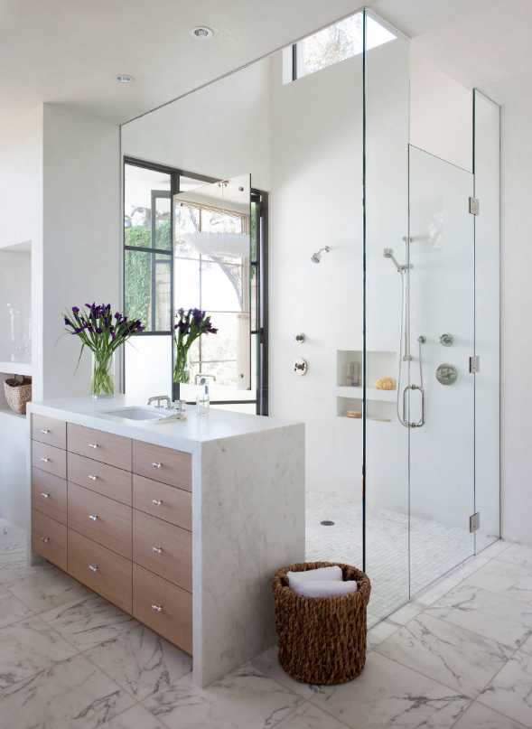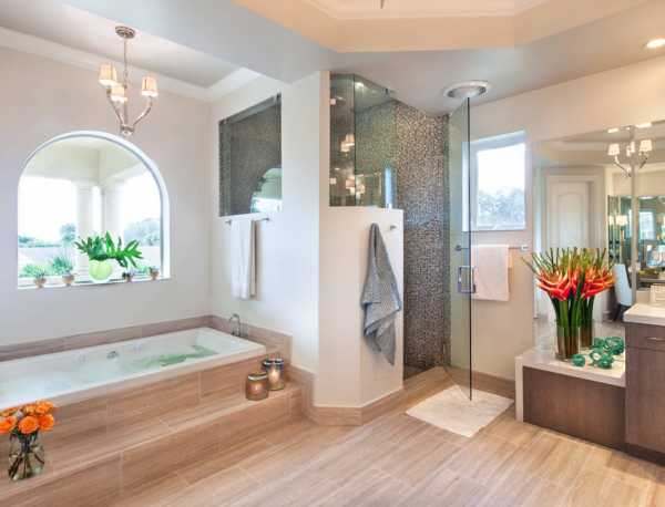 В большой ванной комнате тоже нужны ограничения размеров, для душевой кабины следует определить подходящее место. Пропорции необходимо выдержать относительно зоны, тогда все в интерьере ванной будет гармоничным.