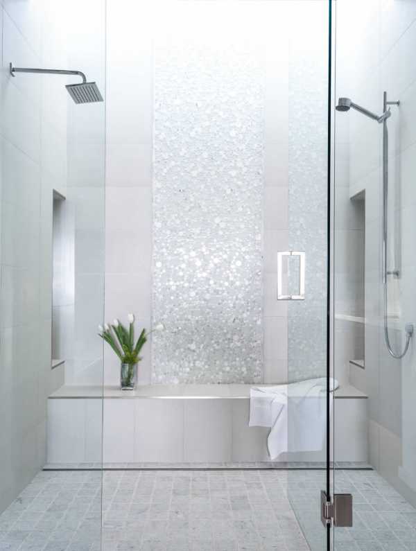 Стеклянная шторка для душа может быть прозрачной или матовой, рифленой или с нанесенным рисунком