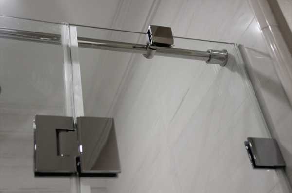 Фурнитура в процессе пользования стеклянной душевой ширмы с поддоном несет на себе серьезную нагрузку. Она удерживает тяжелую конструкцию, обеспечивает функциональность дверей: