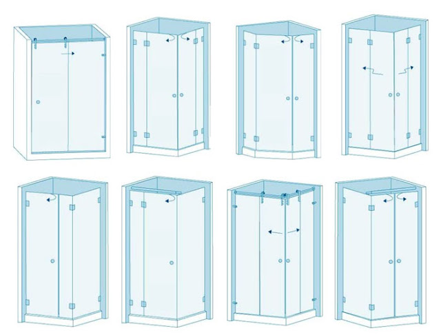 Душевые кабины угловые в основном бывают треугольными, с раздвижными дверями, и продолговатым поддоном и не большим гидробоксом. Но существуют и другие разновидности угловых душевых кабин.