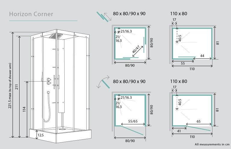 Когда дело доходит до угловых душевых, размеры не меняются. №