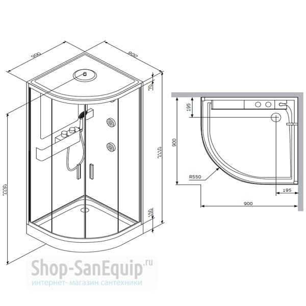 - 48 дюймов x 48 дюймов 900 большие размеры, такие как 60 дюймов x 36 дюймов, а также можно добавить скамейку для душа.