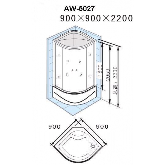 Основные размеры угловых душевых кабин