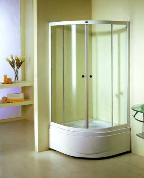 В зависимости от площади ванной душевые кабины отличаются по форме и размерам. В маленьких ванных комнатах используются прямоугольные, полукруглые и другие конструкции. Возможно изготовление кабинки и на заказ по установленным размерам. Они могут быть с каркасами и без них. Первые в основном изготовляются из алюминиевого профиля, которые легко переносит влажную среду и имеет небольшой вес.