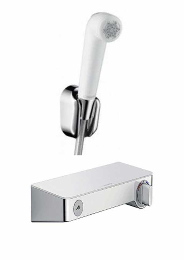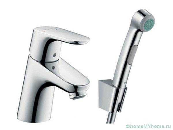 ΠΡΡ ΠΌΠΎΠΆΠ½ΠΎ ΠΏΠΎΠ΄ΠΊΠ»ΡΡΠΈΡΡ ΠΊ ΡΠΆΠ΅ ΠΈΠΌΠ΅ΡΡΠ΅ΠΌΡΡΡ ΡΠΌΠ΅ΡΠΈΡΠ΅Π»Ρ, Π° ΠΌΠΎΠΆΠ½ΠΎ ΠΊΡΠΏΠΈΡΡ ΡΠΌΠ΅ΡΠΈΡΠ΅Π»Ρ Π΄Π»Ρ ΡΠ°ΠΊΠΎΠ²ΠΈΠ½Ρ ΠΈ Π΄ΡΡ Π΄Π»Ρ Π³ΠΈΠ³ΠΈΠ΅Π½Ρ Π² ΠΊΠΎΠΌΠΏΠ»Π΅ΠΊΡΠ΅. ΠΠ½ Π²ΡΠ³Π»ΡΠ΄ΠΈΡ ΠΊΠ°ΠΊ ΠΎΠ±ΡΡΠ½ΡΠΉ ΡΠΌΠ΅ΡΠΈΡΠ΅Π»Ρ, Π½ΠΎ Ρ Π½Π΅Π³ΠΎ Π΅ΡΡΡ Π²ΡΡ ΠΎΠ΄ ΡΠΌΠ΅ΡΠ°Π½Π½ΠΎΠΉ Π²ΠΎΠ΄Ρ Π½Π° Π³ΠΈΠ³ΠΈΠ΅Π½ΠΈΡΠ΅ΡΠΊΡΡ Π»Π΅ΠΉΠΊΡ.Β Π Π°Π±ΠΎΡΠ°Π΅Ρ ΠΎΠ½ ΡΠ»Π΅Π΄ΡΡΡΠΈΠΌ ΠΎΠ±ΡΠ°Π·ΠΎΠΌ. ΠΡΠΈ ΠΎΡΠΊΡΡΠ²Π°Π½ΠΈΠΈ ΡΠΌΠ΅ΡΠΈΡΠ΅Π»Ρ Π²ΠΎΠ΄Π° Π½Π°ΡΠΈΠ½Π°Π΅Ρ ΡΠ΅ΡΡ ΠΈΠ· Π΅Π³ΠΎ ΠΈΠ·Π»ΠΈΠ²Π° (Π½ΠΎΡΠΈΠΊΠ°). ΠΠ°Π²Π»Π΅Π½ΠΈΠ΅ Π²ΠΎΠ΄Ρ Π² ΡΡΠΎ Π²ΡΠ΅ΠΌΡ ΠΈΠ΄Π΅Ρ ΠΏΠΎ Π΄ΡΡΠ΅Π²ΠΎΠΌΡ ΡΠ»Π°Π½Π³Ρ ΠΊ Π³ΠΈΠ³ΠΈΠ΅Π½ΠΈΡΠ΅ΡΠΊΠΎΠΉ Π»Π΅ΠΉΠΊΠ΅, Π² ΠΊΠΎΡΠΎΡΠΎΠΉ ΡΡΡΠ°Π½ΠΎΠ²Π»Π΅Π½ ΠΊΠ»Π°ΠΏΠ°Π½, Π΄Π΅ΡΠΆΠ°ΡΠΈΠΉ ΡΡΠΎ Π΄Π°Π²Π»Π΅Π½ΠΈΠ΅. ΠΡΠΈ Π½Π°ΠΆΠ°ΡΠΈΠΈ ΡΠΏΠ΅ΡΠΈΠ°Π»ΡΠ½ΠΎΠΉ ΠΊΠ½ΠΎΠΏΠΊΠΈ Π½Π° Π³ΠΈΠ³ΠΈΠ΅Π½ΠΈΡΠ΅ΡΠΊΠΎΠΉ Π»Π΅ΠΉΠΊΠ΅ Π²ΠΎΠ΄Π° Π½Π°ΡΠΈΠ½Π°Π΅Ρ ΡΠ΅ΡΡ ΠΈΠ· Π»Π΅ΠΉΠΊΠΈ, Π° Π½Π΅ ΠΈΠ· ΡΠΌΠ΅ΡΠΈΡΠ΅Π»Ρ, ΠΈ Π΄Π°Π»Π΅Π΅ β Π² ΡΠ½ΠΈΡΠ°Π·.