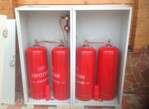 При использовании баллонного газа обязательно используется редуктор, объединяющий группу баллонов