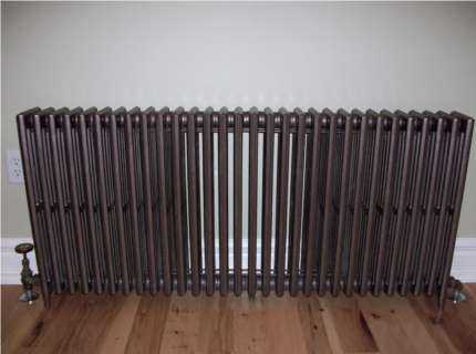 Кроме того, можно использовать массивные чугунные батареи с напольной установкой. Такие отопительные приборы остывают очень долго, так как их масса может достигать 100 кг.