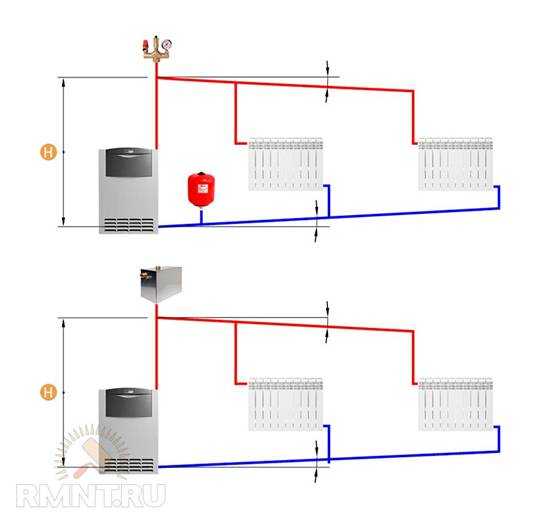 Схема обвязки котла при естественной циркуляции