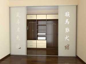 При использовании стекла и зеркал для изготовления гардеробных дверей-купе применяют специальный ударопрочный материал. Стеклянные панели, как правило, изготавливаются из непрозрачного или полупрозрачного материала (матового, глянцевого, цветного). Стекло с обратной стороны обклеивают специальной пленкой безопасности, не позволяющей разлететься осколкам в случае нарушения целостности полотна. Такие панели устанавливаются таким же образом, как деревянные и пластиковые.