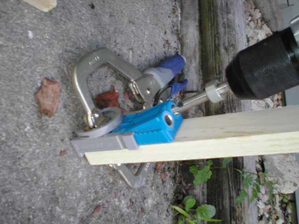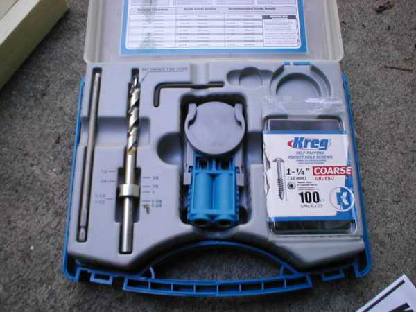 Теперь начинается самое интересное. Кондуктор, который я упомянул ранее, играет главную роль. Комплект включает в себя необходимые зажимы и саморезы, но их мало поэтому придется докупить. Винты в комплекте имеют специальную головку, поэтому она тоже входит в комплект. Я не буду писать подробную инструкцию по использованию Kreg Jig, все видно на фотографиях. Оставлю лишь несколько примечаний.
