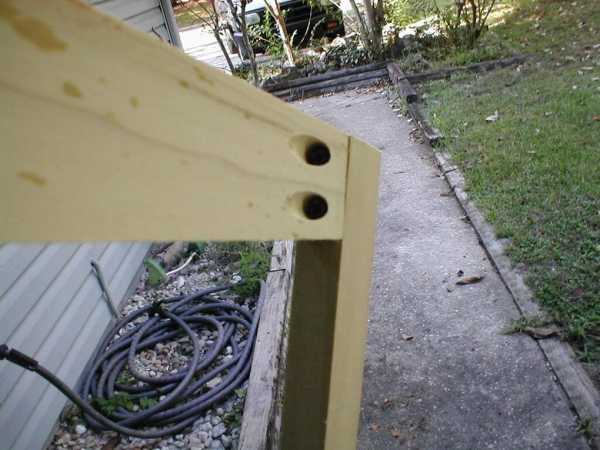 Сборку рамы, лучше не делать на полу, как сделал я. Так как бруски могут сдвинуться друг относительно друга и в конечном итоге рама будет деформирована. Лучше чтобы угол над которым вы работаете, свисал со стола. Доски будут лежать в одной плоскости и после выравнивания угольником, можно скручивать их. Очень важно выдержать прямой угол!