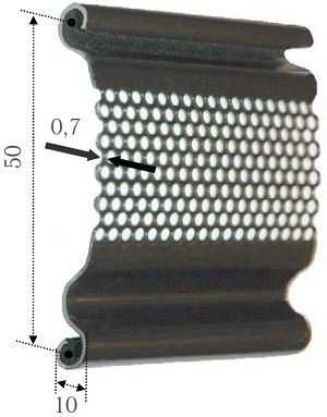 Форма и геометрические размеры профиля бывают разными. Многие производители предлагают перфорированные ламели для обеспечения естественной вентиляции в помещении.